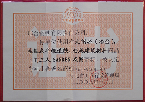 “三人”注冊(cè)商標(biāo)被認(rèn)定為河北省著名商標(biāo)