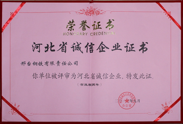 2014年9月10日,河北省安全生產(chǎn)監(jiān)督管理局在全省企業(yè)安全文化建設(shè)交流會(huì)上,授予邢鋼“省級(jí)安全文化建設(shè)示范企業(yè)”稱號(hào)。