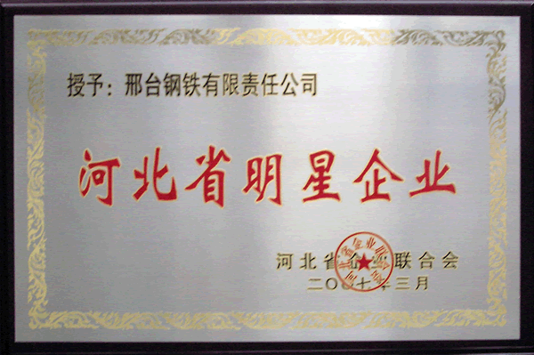 2007年3月,邢鋼獲得由河北省企業(yè)聯(lián)合會(huì)頒發(fā)的“河北省明星企業(yè)”榮譽(yù)稱號(hào)。