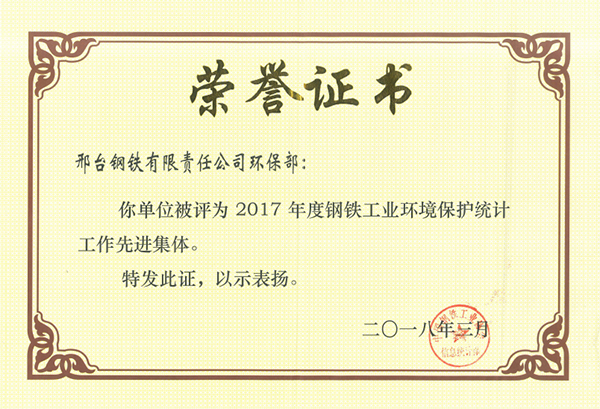 2018年3月15日,邢鋼(主要產(chǎn)品:三人牌純鐵、碳鋼、不銹鋼、軸承鋼系列盤條和熱軋帶肋鋼筋),被中國質(zhì)量檢驗協(xié)會授予“全國產(chǎn)品和服務質(zhì)量誠信示范企業(yè)”稱號。