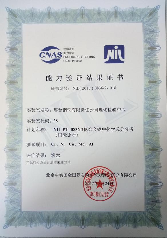 邢鋼理化檢驗(yàn)中心9項(xiàng)能力驗(yàn)證全部通過