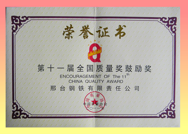 邢鋼榮獲“全國質(zhì)量獎(jiǎng)鼓勵(lì)獎(jiǎng)”