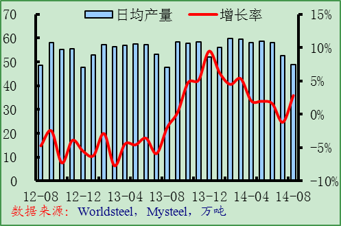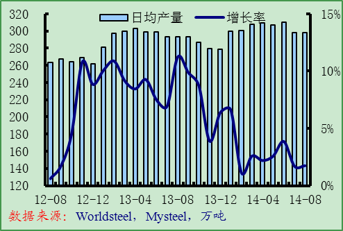 8月份亞洲粗鋼日均產量達到298.4噸,環(huán)比增長0.1%,同比增長1.7%,韓國和印度產量增長明顯。根據中鋼協(xié)的統(tǒng)計,9月份中國重點鋼企粗鋼日均產量環(huán)比小幅下降,而Mysteel調查的9月份全國鋼鐵PMI產出指數(shù)也有所下降。預計9月份亞洲粗鋼日均產量將環(huán)比下降。