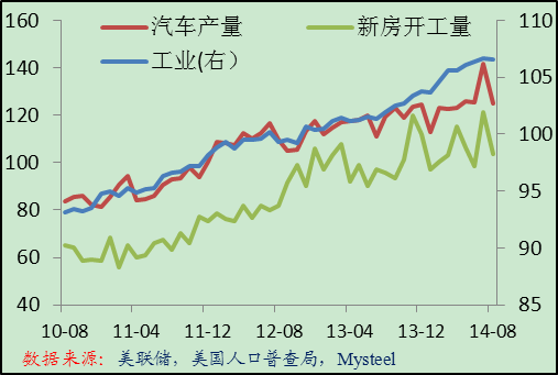 9月份美國粗鋼產量開始下降,結合進口量數(shù)據,可以大致判斷出市場需求正在環(huán)比下降,與工業(yè)、汽車產量和新房開工量數(shù)據吻合。