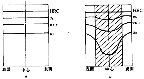 a-淬透鋼高溫回火后的性能沿截面分布情況