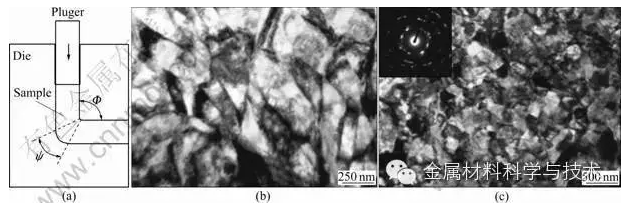 在金屬的成形過(guò)程中將超大塑性應(yīng)變應(yīng)用于一定體積的金屬中以獲得超細(xì)晶材料的過(guò)程,其本質(zhì)是細(xì)晶強(qiáng)化。通過(guò)大的塑性變形使材料的位錯(cuò)密度增加,形成位錯(cuò)壁,將位錯(cuò)壁轉(zhuǎn)化為大角度晶界,從而獲得超細(xì)晶組織以及控制形成不同的織構(gòu)。該技術(shù)已經(jīng)在制備各種超細(xì)晶材料領(lǐng)域獲得了廣泛的應(yīng)用。