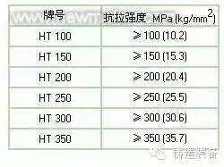 表2為灰鑄鐵的新的國(guó)家標(biāo)準(zhǔn)。該標(biāo)準(zhǔn)是以灰鑄鐵的抗拉強(qiáng)度作為分級(jí)依據(jù)的。由于灰鑄鐵對(duì)冷卻速率的敏感性(壁厚效應(yīng)),同一種牌號(hào)鑄鐵在不同鑄件壁厚條件下的實(shí)際強(qiáng)度有很大的差別(薄壁與厚壁之間在強(qiáng)度上的差別達(dá)50-80MPa)。