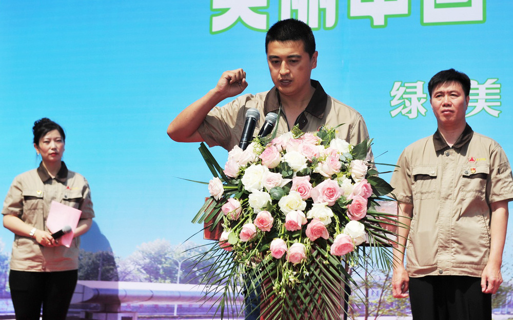 煉鐵廠職工侯浩然代表5000名職工宣誓,將積極參加車間、現(xiàn)場環(huán)境美化行動,用好污染防治設施,爭當遵守環(huán)保政策法規(guī)的行動者,為綠美邢鋼,為邢臺市“藍天保衛(wèi)戰(zhàn)”,做出自己的貢獻。