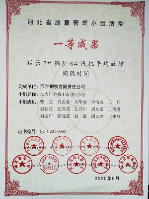 今年5月份邢鋼上報篩選出的10個質(zhì)量科技成果,參加了9月份河北省市場監(jiān)管局、省工信廳、省農(nóng)業(yè)農(nóng)村廳、省國資委、省總工會、省團省委、省婦聯(lián)、省科協(xié)和省質(zhì)協(xié)等9個單位聯(lián)合組織的成果交流會發(fā)布比賽,由專家評委當場打分確定比賽成績,最終認定了各參賽選手獲獎等級,日前通過冀質(zhì)協(xié)字〔2020〕20 號《關(guān)于印發(fā)2020年河北省質(zhì)量管理小組活動質(zhì)量科技成果及優(yōu)秀企業(yè)、卓越領(lǐng)導者、優(yōu)秀推進者名單的通知》文件中公布了質(zhì)量成果獲獎名單,并頒發(fā)了證書。