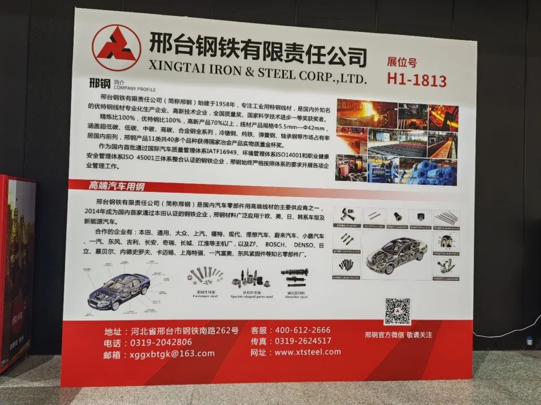 On May 24, 2023, the 3-day International Fastener Show China 2023 held at Shanghai World Expo Exhibition & Convention Center will come to an end. The exhibition area of Xingtai Steel , which is marked as a famous area, still has many representatives coming to tick off. They all expressed their high expectations for the many products that Xingtai Steel brought to the exhibition. Xingtai Steel showed and introduced the wide application of the products in the fields of automobile, railroad, construction machinery, home appliances and electronic products, which attracted much attention.