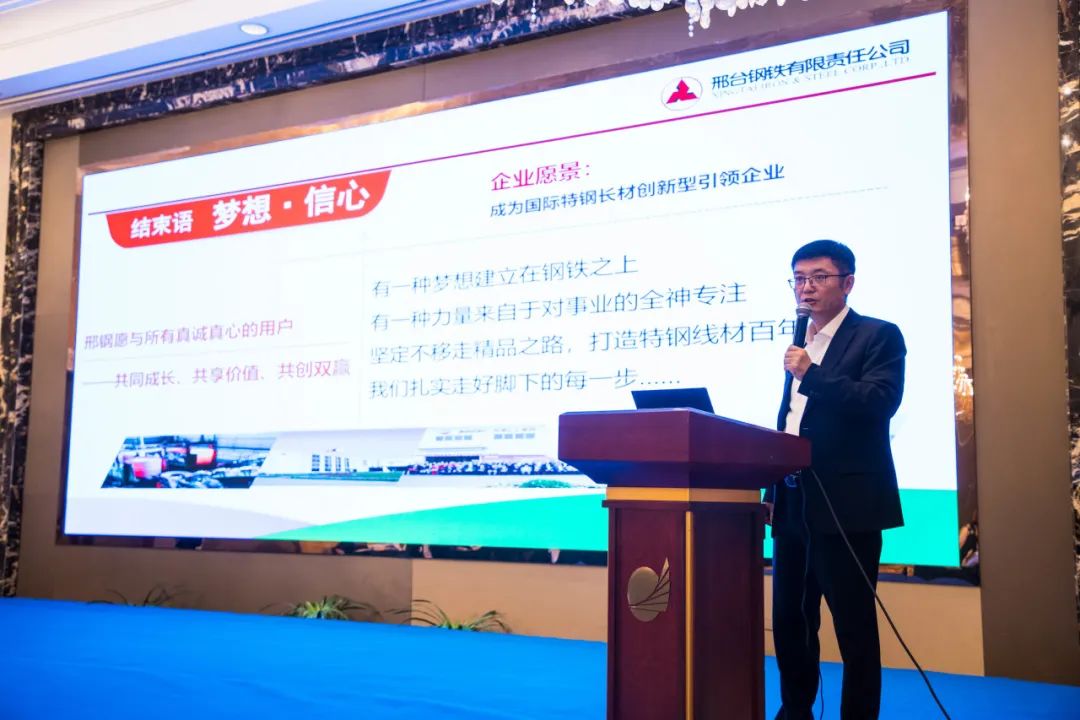 期間,邢鋼總經(jīng)理彭世丹作了《新規(guī)劃引領(lǐng)新未來,新邢鋼再鑄新輝煌》報告,邢鋼董事長助理、總工程師田新中作了《緊固件用鋼的開發(fā)和質(zhì)量控制技術(shù)》報告。浙江國檢檢測技術(shù)公司副總經(jīng)理王慧、晉億公司質(zhì)量技術(shù)部經(jīng)理張勇、中化創(chuàng)新研究院雙碳咨詢事業(yè)部總經(jīng)理劉通、上善院研發(fā)工程師楊現(xiàn)亮、南京工程學(xué)院教授趙秀明、上海納特汽車標(biāo)準(zhǔn)件公司研發(fā)總監(jiān)李軍正分別進行了行業(yè)技術(shù)報告分享。