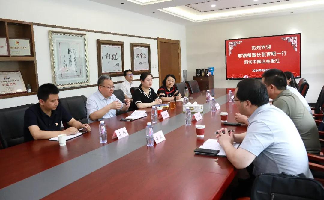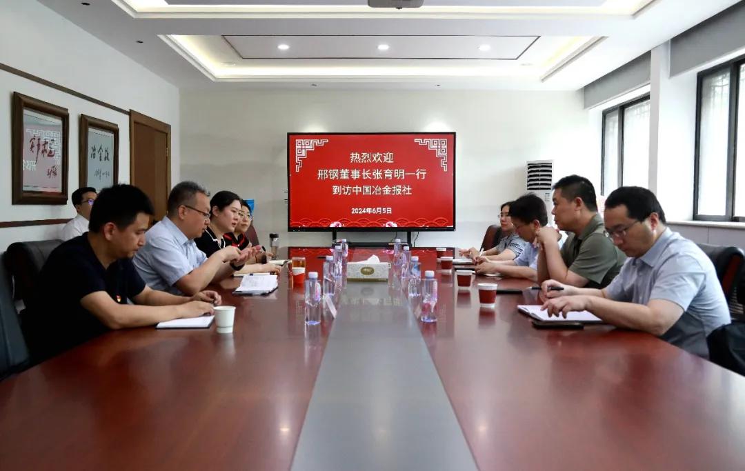 6月5日下午,邢臺(tái)鋼鐵有限責(zé)任公司董事長(zhǎng)張育明一行到訪中國(guó)冶金報(bào)社,中國(guó)鋼鐵工業(yè)協(xié)會(huì)副秘書(shū)長(zhǎng),中國(guó)冶金報(bào)社黨委書(shū)記、社長(zhǎng)范鐵軍熱情歡迎張育明一行的到來(lái),雙方進(jìn)行了座談交流。