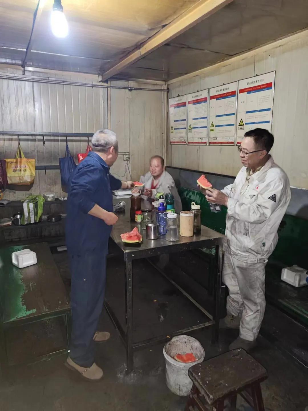 6月10日上午,公司副總經(jīng)理侯浩然、副廠長王華一行來到煉鐵廠高爐爐前東場和西場、輔助噴煤崗位、二燒混合機檢修現(xiàn)場、二燒看火、原料131等崗位,帶來西瓜等飲品,代表公司和廠部看望奮戰(zhàn)在一線辛勤作業(yè)的員工們。