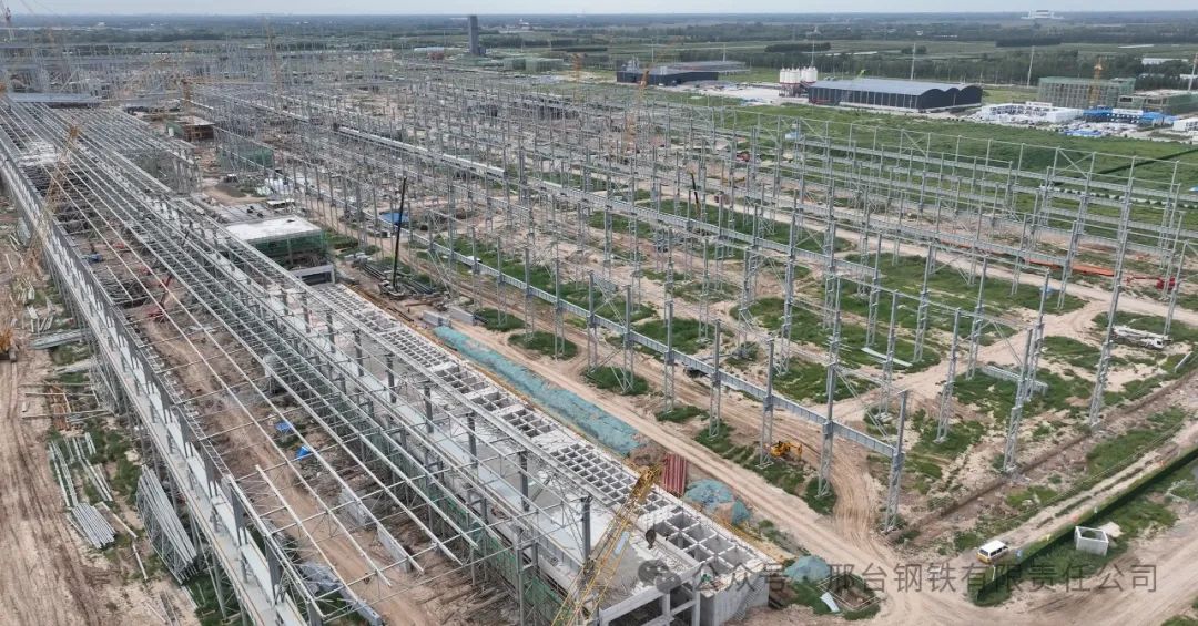 在大盤卷車間西側的不遠處,就是新邢鋼的心臟地帶——熔融還原爐!它可是新邢鋼的超級大明星,一路上我倆嘰嘰喳喳地探討過好多問題,全部都是關于它的建設情況。目前它還沒有落好,但我們有這樣的耐心,好事兒多磨嘛!看還原爐旁邊那些架起的鋼結構,也如同衛(wèi)士一般站在那里,我相信它們也和你一樣,熱切期待還原爐像啟明星一樣冉冉升起,照亮整個新邢鋼,引領行業(yè)未來!