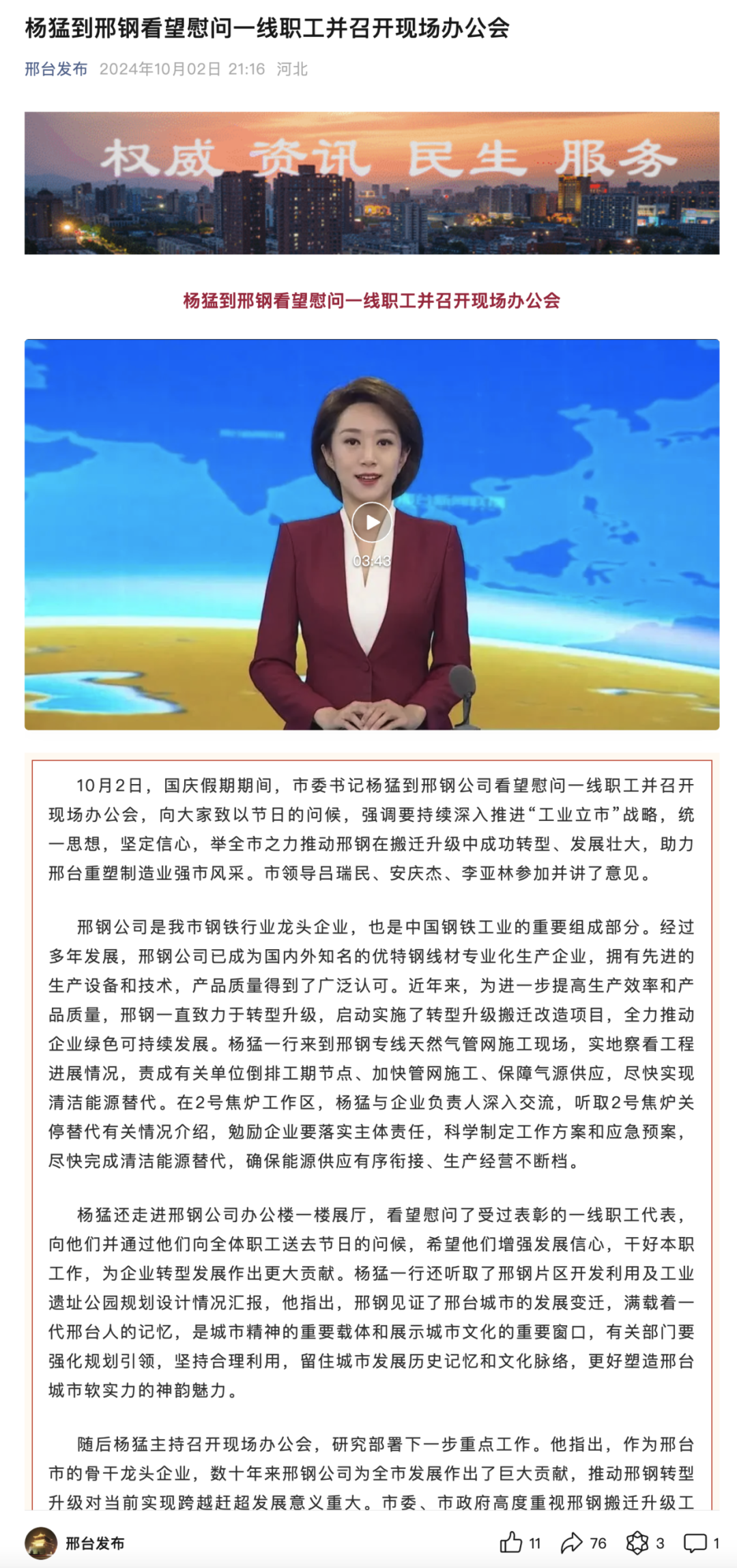 “邢臺(tái)發(fā)布 ”最新報(bào)道