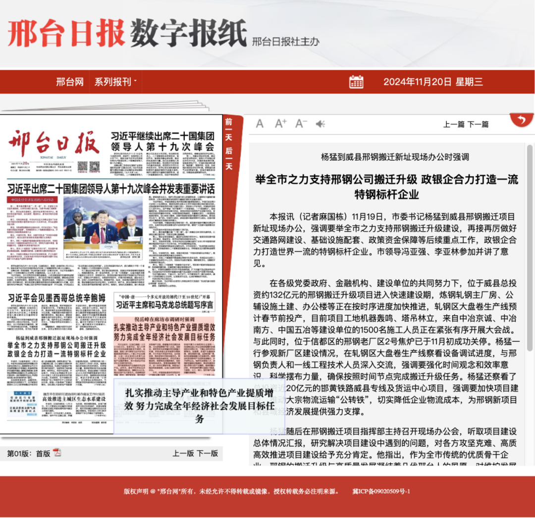 《邢臺(tái)日報(bào)》11.20頭版報(bào)道