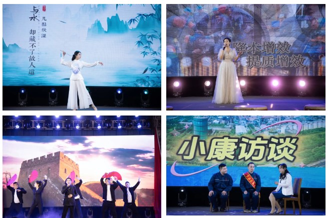 聯(lián)歡會在煉鐵廠震撼人心的《旗鼓飛揚》的鼓聲中拉開帷幕,煉鋼廠、線材廠、新翔公司等二級單位、子公司錄制的《邢鋼一線員工賀新春》視頻為聯(lián)歡會烘托出濃厚的節(jié)日氣氛。碳資產(chǎn)管理部蘆麗華、線材廠張嬌的一首《紅彤彤的春天》讓觀眾如沐春風,銷售公司田芳、張可等的動感現(xiàn)代舞《奔跑吧,兄弟!》又讓觀眾切身感受到市場營銷人員的拼搏、奉獻。焦化廠申學(xué)軍、閆俊萍等的《難忘的焦爐情懷》,以情境小品的形式,再現(xiàn)2#焦爐安全停爐的場景,重溫焦化人站好最后一班崗的敬業(yè)情懷;線材廠魏東的《步步高》,唱出了邢鋼人的激情與豪情。技術(shù)中心蔡永賓等的詩朗誦《攜手邢鋼,追夢邢鋼》,以新一代邢鋼人的視角,張揚青春,澎湃激情;煉鋼廠張康健、甄建軍的《想把我唱給你聽》、資金部趙嘉薏的舞蹈《青花瓷》、能源動力部董巖的《匆匆歲月細細地過》、新翔公司郭文杰、景雙輝等的歌伴舞《雪龍吟》展現(xiàn)了鋼鐵人的別樣情懷。晚會中的兩個小品——煉鐵廠的《考察》、煉鋼廠的《小康訪談》,在輕松詼諧的氣氛中,展示了廣大員工對新邢鋼美好未來的信心。邢鋼搬遷項目指揮部與綜合辦公室、線材廠帶來的詩朗誦《希冀,奮進,筑夢新邢鋼》,回顧了邢鋼搬遷項目的建設(shè)歷程,激勵全體員工以更加昂揚的斗志、更加飽滿的激情,投身到各自的崗位上,讓新邢鋼的旗幟,永遠在鋼鐵行業(yè)的巔峰飄揚!