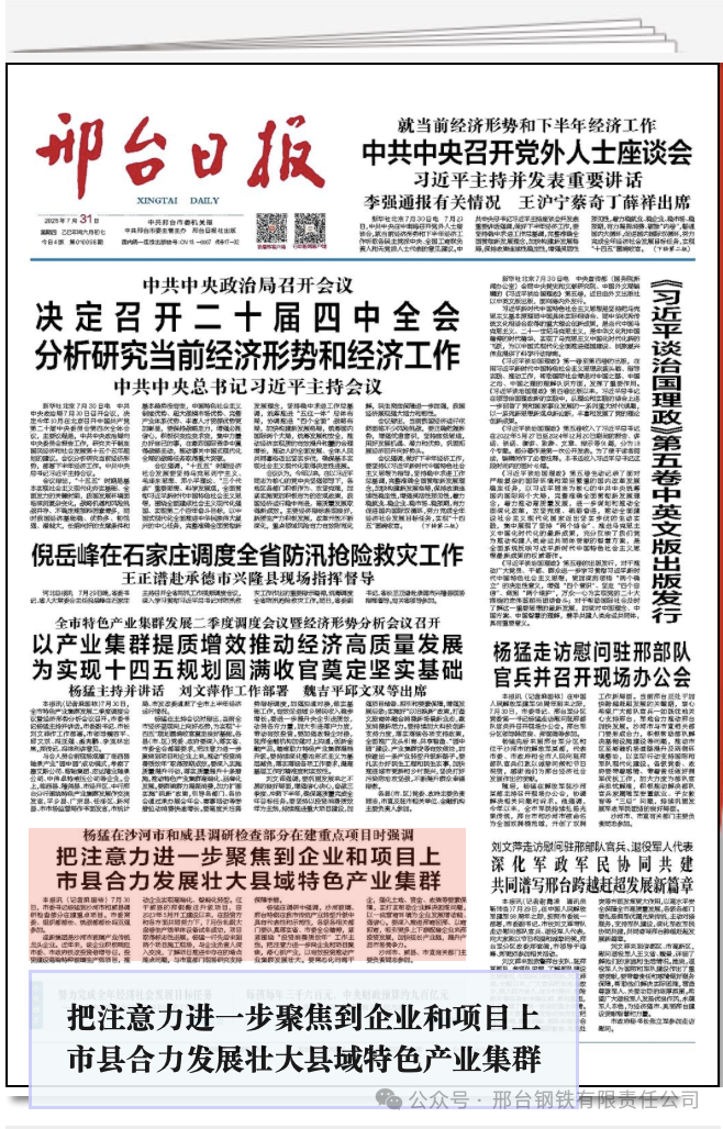 楊猛在調研中強調,沙河玻璃、邢臺特鋼在我市傳統(tǒng)產業(yè)轉型升級中具有代表性和示范性,各級各相關部門要認真落實省、市委全會精神,緊緊圍繞“投資消費質效年”工作主線,把注意力進一步向企業(yè)和項目聚焦,潛心抓產業(yè),以有效投資推動產業(yè)集群發(fā)展壯大。要常態(tài)化問需于企,強化土地、資金、政策等要素保障,實打實幫助企業(yè)解決困難問題,以一流營商環(huán)境為企業(yè)發(fā)展增動能、強信心。要深入推進邢商回邢、以商招商,吸引更多上下游配套企業(yè)來邢投資發(fā)展,加快延長產業(yè)鏈,提升產品市場競爭力。